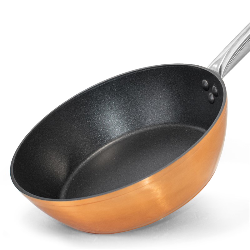 Sartén Cok Chef Alfredo Honda Copper. Antiadherente, resistente y de excelente conducción térmica para cocinar con precisión y estilo.