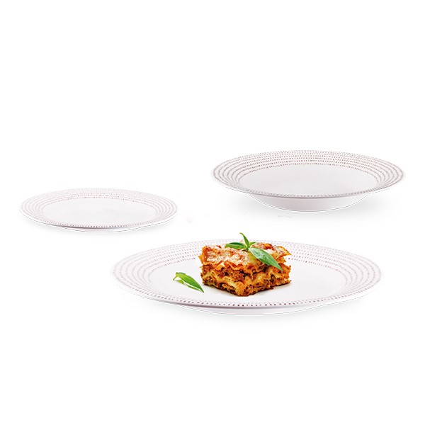 El Cok Set de Vajilla Elba Trend de 18 piezas combina diseño contemporáneo, elegancia y resistencia, perfecto para comidas diarias o cenas especiales. Incluye 6 platos llanos de 25 cm, 6 platos hondos de 20 cm y platos de postre de 18 cm