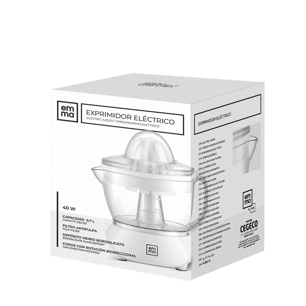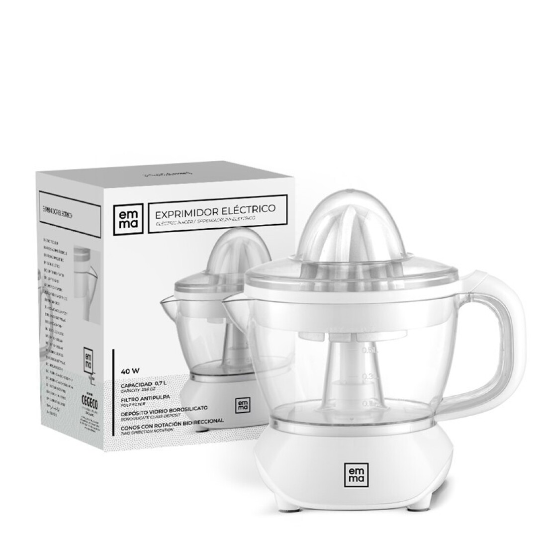 Con un acabado en color blanco moderno y elegante, el exprimidor Emma no solo es funcional, sino que también complementa cualquier estilo de cocina. Ideal para quienes buscan comodidad, practicidad y frescura en cada vaso.