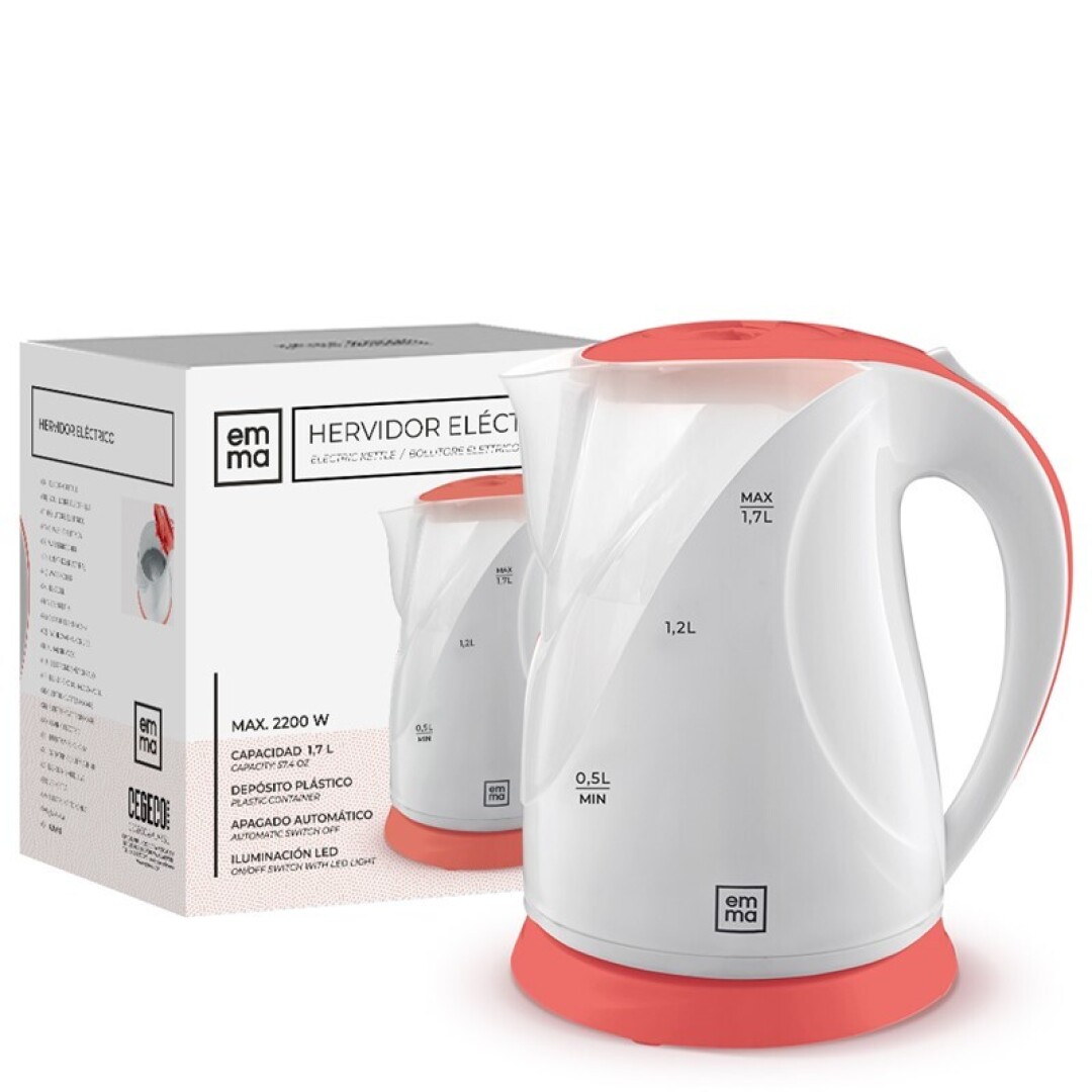 Añade un toque de color y practicidad a tu cocina con el hervidor Emma Coral. Con una capacidad de 1,7 litros y una potencia de 2200W, es perfecto para preparar agua caliente de forma rápida para té, café, infusiones o sopas instantáneas.